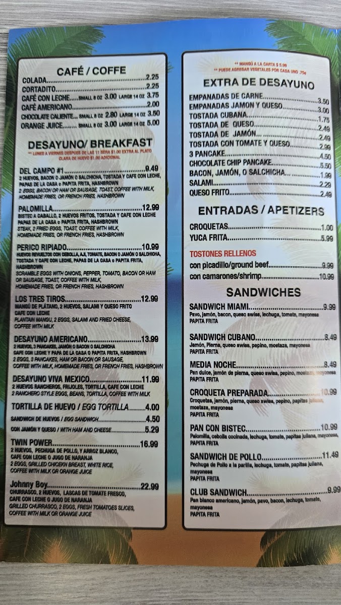 Del Campo Latin Food & Cafe offers a menu rooted in the comforting flavors of Cuban and Latin cuisine, perfect for casual meals any time of day. Whether you're stopping by for a morning boost or a laid-back lunch, the selection balances simple café favorites with heartier dishes that invite a relaxed and friendly dining experience.