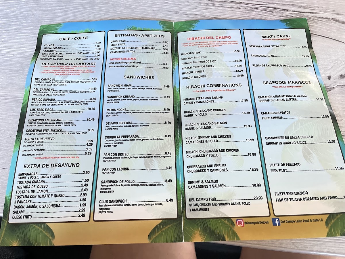 Del Campo Latin Food & Cafe Menu